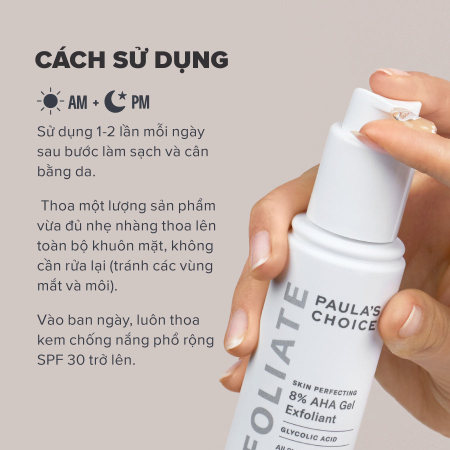 Sản phẩm Skin Perfecting 8% AHA Gel Exfoliant được nghiên cứu và điều chế với công thức an toàn, nhẹ dịu, phù hợp với mọi làn da kể cả da nhạy cảm. Tuy nhiên, nếu da bạn cực kỳ nhạy cảm và chưa từng sử dụng AHA, hãy bắt đầu với Resist Daily Smoothing Treatment With 5% AHA trước.