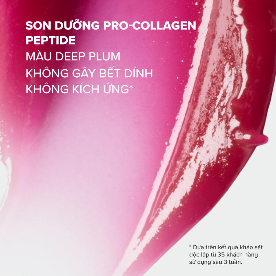 Son dưỡng môi Pro-Collagen Peptide Gloss Balm Deep Plum sở hữu công thức đột phá từ 3x Pro-Collagen Peptides với kết cấu tint bóng nhẹ, không gây bết dính giúp dưỡng ẩm sâu cho đôi môi mịn màng, căng bóng. Sản phẩm đã được chứng minh lâm sàng giúp tăng cường độ đầy đặn, làm căng mọng và mịn môi suốt 24 giờ chỉ sau một lần sử dụng.