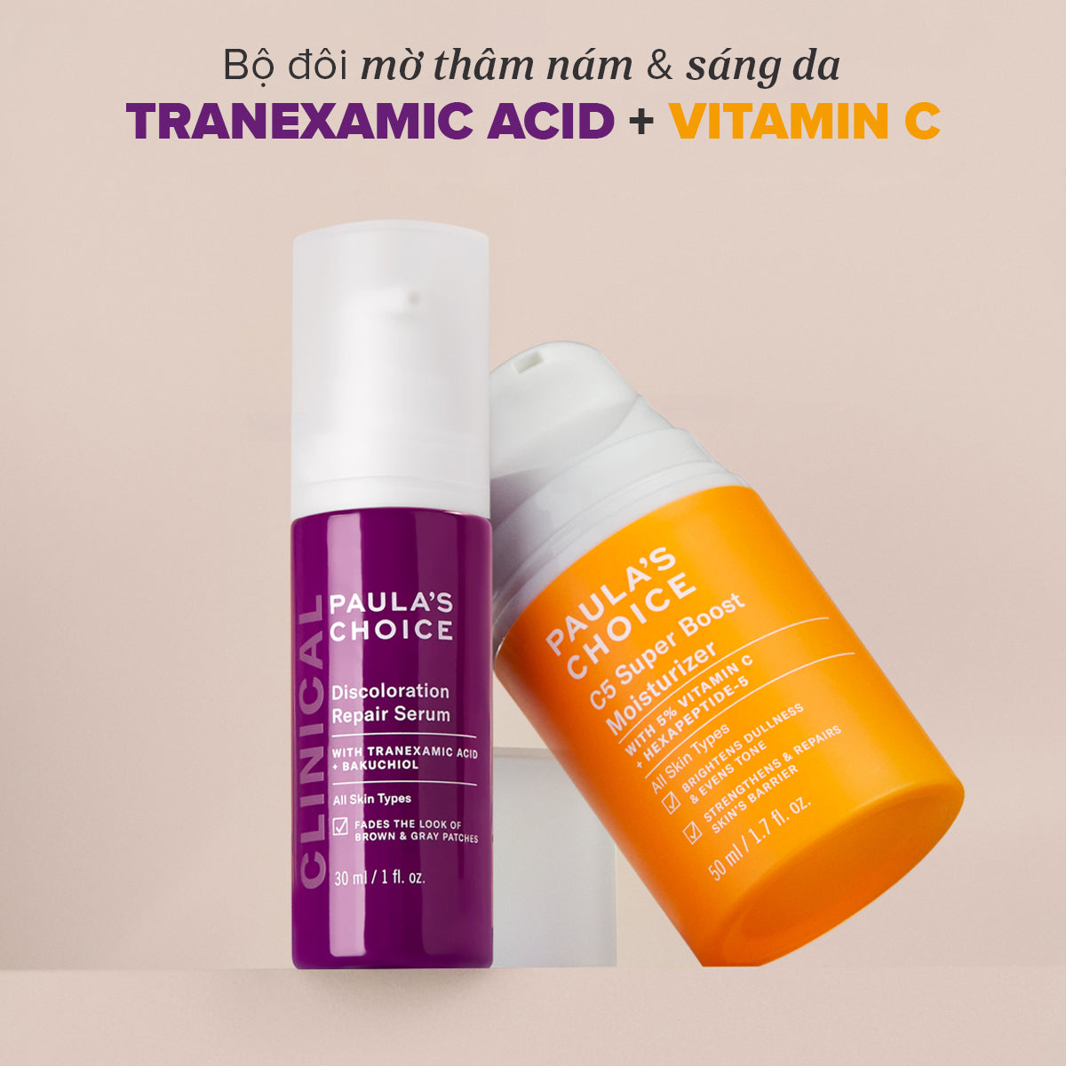 Vì thế để chống lão hóa, cải thiện nếp nhăn, độ đàn hồi da, hãy chọn 1% Retinol. Nếu bạn muốn mờ thâm nám, giảm tàn nhang, hãy chọn Clinical Discoloration Repair Serum.