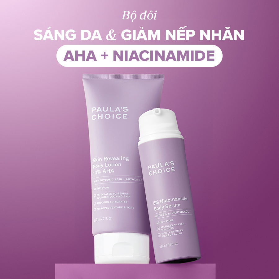 5% Niacinamide Body Serum và Retinol Body Treatment đều là những lựa chọn tuyệt vời với một số lợi ích trùng nhau và lợi ích riêng. 5% Niacinamide Body Serum sẽ là lựa chọn tốt nhất cho tình trạng tăng sắc tố và da không đều màu trên cơ thể trong khi Retinol Body Treatment là siêu sao cho nhiều dấu hiệu lão hóa, nếp nhăn và mất độ săn chắc. Kết hợp của hai sản phẩm này với một trong những sản phẩm tẩy tế bào chết cơ thể của chúng tôi sẽ tối đa hóa kết quả. Bạn có thể layer các sản phẩm này một lần mỗi ngày hoặc cách ngày, sử dụng Retinol một ngày, Niacinamide ngày tiếp theo và dùng một trong những sản phẩm tẩy tế bào chết cơ thể của chúng tôi hàng ngày, tùy thuộc vào phản ứng của da bạn như thế nào.