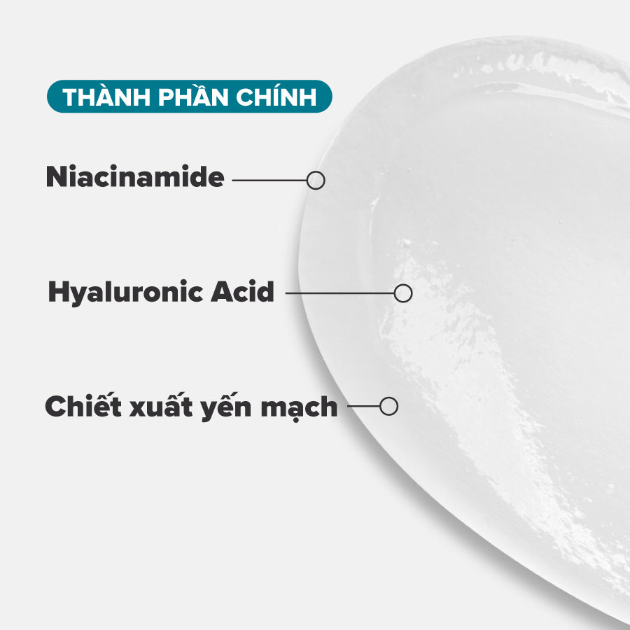 Niacinamide, Hyaluronic Acid, Chiết xuất yến mạch