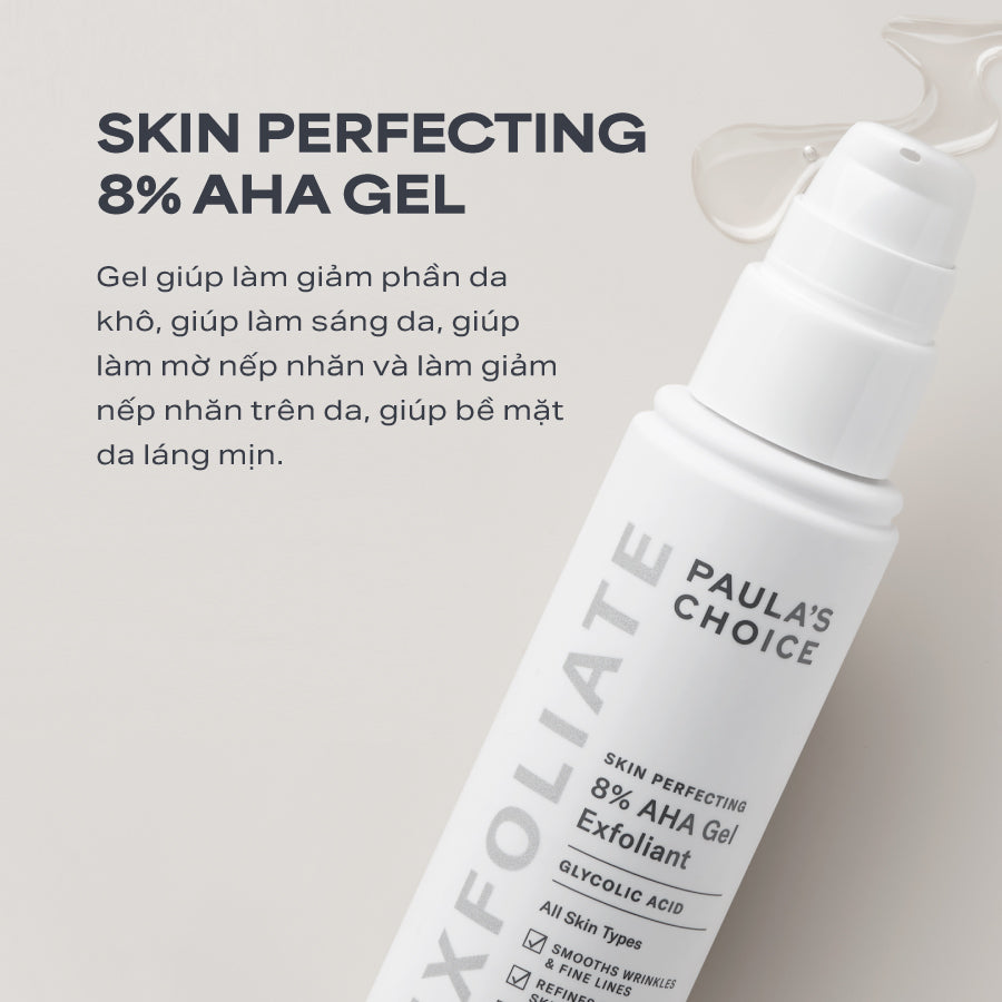 Sản phẩm Skin Perfecting 8% AHA Gel Exfoliant được nghiên cứu và điều chế với công thức an toàn, nhẹ dịu, phù hợp với mọi làn da kể cả da nhạy cảm. Tuy nhiên, nếu da bạn cực kỳ nhạy cảm và chưa từng sử dụng AHA, hãy bắt đầu với Resist Daily Smoothing Treatment With 5% AHA trước.