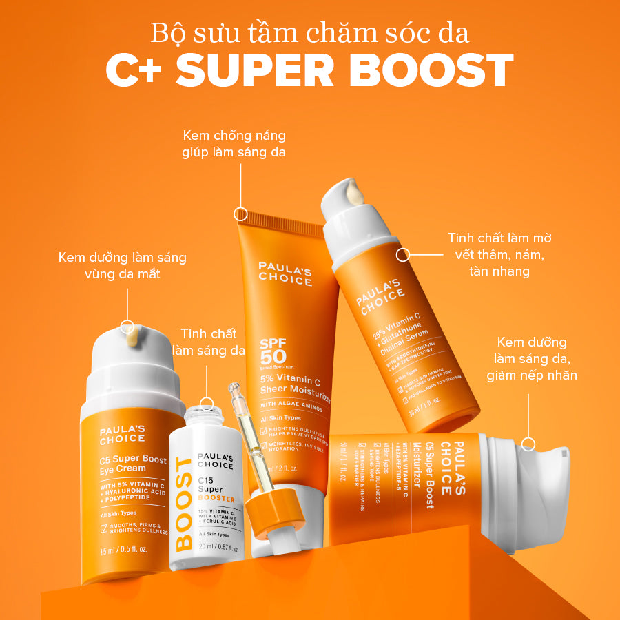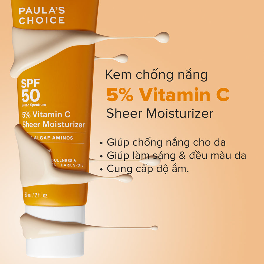 5% Vitamin C Sheer Moisturizer SPF 50 là sản phẩm chống nắng đa tác động, với công thức 5% vitamin C cùng chiết xuất gừng Acetyl Zingerone và Acid Amin từ tảo đỏ giúp tăng cường khả năng bảo vệ da trước tác hại của ánh nắng, đồng thời cải thiện độ sáng cho da đều màu và ẩm mịn.