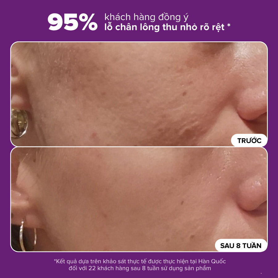+ Giảm đáng kể tình trạng lỗ chân lông to.
