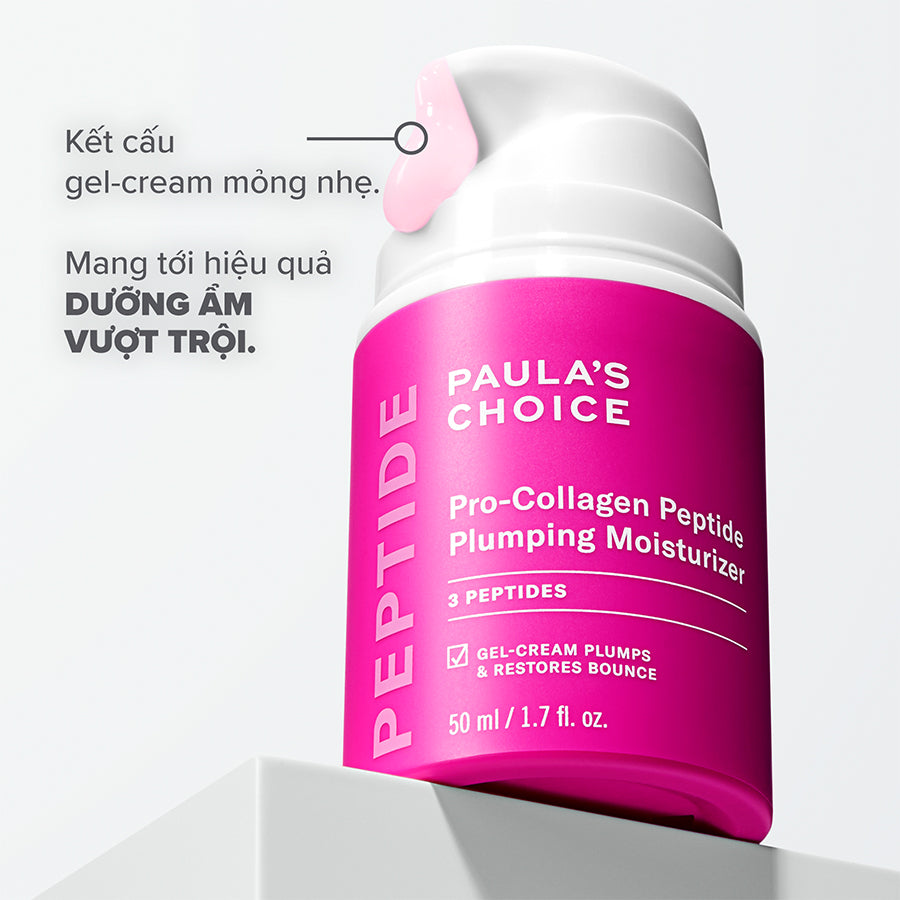 1. Pro-Collagen Peptide Plumping Moisturizer sở hữu công thức đột phá từ 3x Pro-Collagen Peptides với kết cấu kem-gel dưỡng ẩm sâu cho da mà không gây cảm giác bết dính hay nặng mặt. Sản phẩm được chứng minh lâm sàng giúp cải thiện độ đàn hồi cho da săn chắc và căng mọng rõ rệt với cơ chế duy trì và kích thích sản sinh collagen tự nhiên trên da.