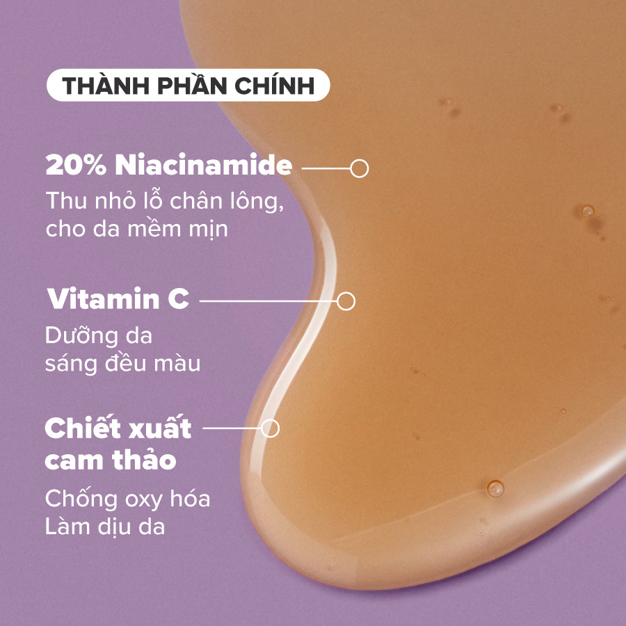 Nồng độ Niacinamide trong công thức vượt trội của sản phẩm sẽ giúp thu nhỏ lỗ chân lông, dưỡng da mềm mịn, khắc phục tình trạng da sần vỏ cam, thô ráp, xỉn màu đồng thời kích thích sản sinh collagen, đẩy lùi các dấu hiệu lão hóa.