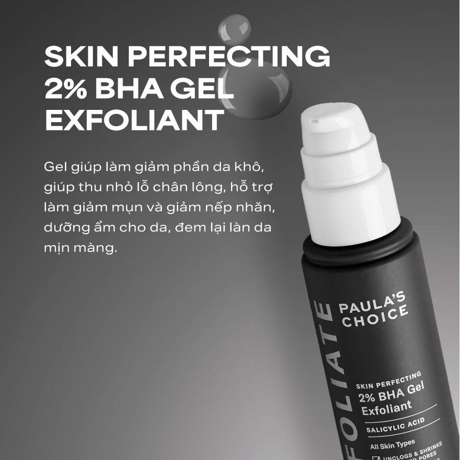 Skin Perfecting 2% BHA Gel Exfoliant giúp làm giảm phần da khô, giúp thu nhỏ lỗ chân lông, hỗ trợ làm giảm mụn và giảm nếp nhăn, dưỡng ẩm cho da, đem lại làn da mịn màng.